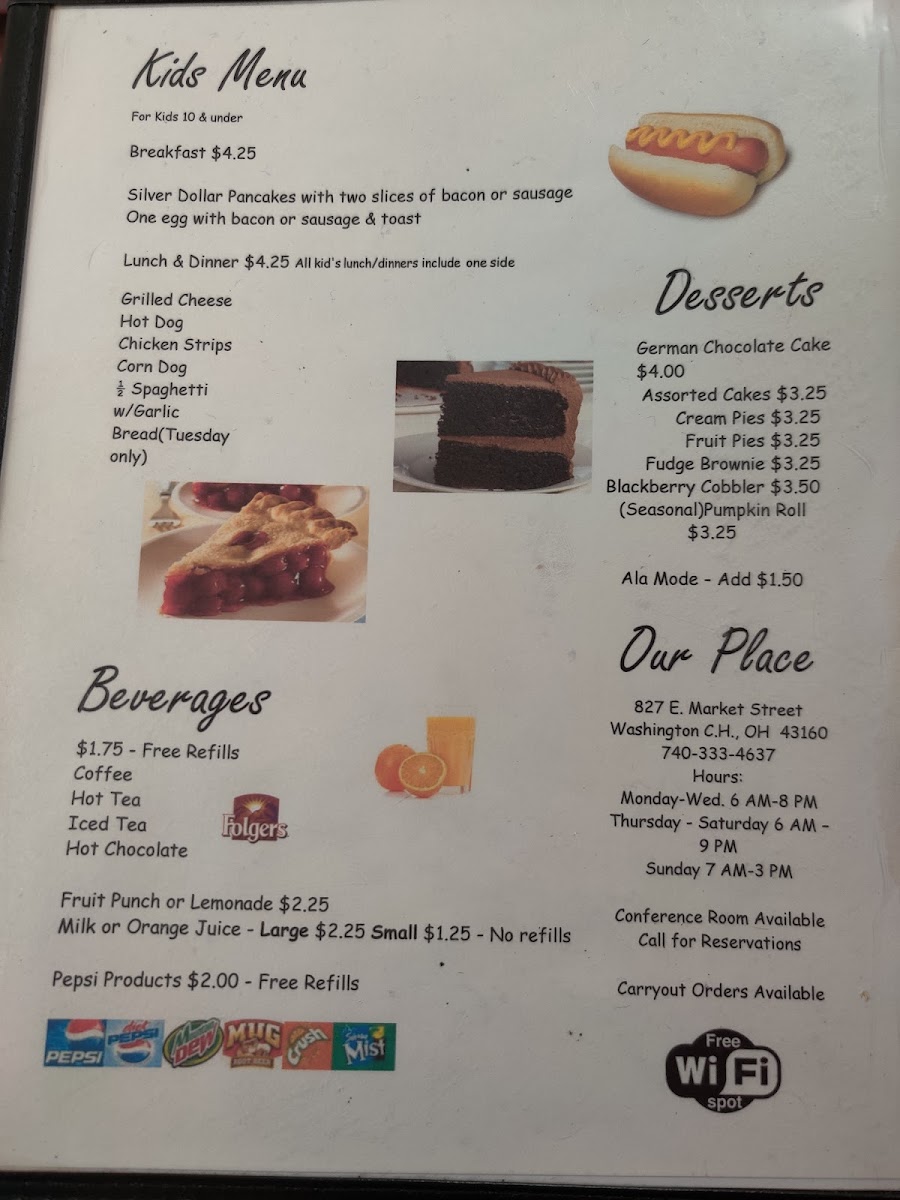 Our Place Restaurant, nestled in Washington Court House, Ohio, offers a welcoming, old-fashioned diner experience reminiscent of a 1970s lunch counter. Known for its hearty broasted chicken and classic American sides, this family-owned eatery serves generous portions at reasonable prices. While some dishes, like the chicken, may vary in preparation, the genuine hospitality and cozy atmosphere create a sense of belonging for both locals and visitors. The straightforward menu and down-to-earth vibe make it a dependable spot for comfort food, where you’re treated like family and enjoy simple, satisfying meals that echo small-town charm.